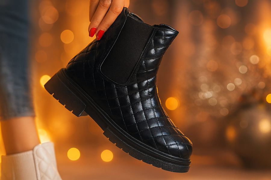 سواء لطلعات الجامعة، الخروجات، السيشنات، أو لوك شتوي كاجوال — Quilty Luxe Black Boot هيكون القطعة اللي تكمّل الستايل وتخطف الأنظار.