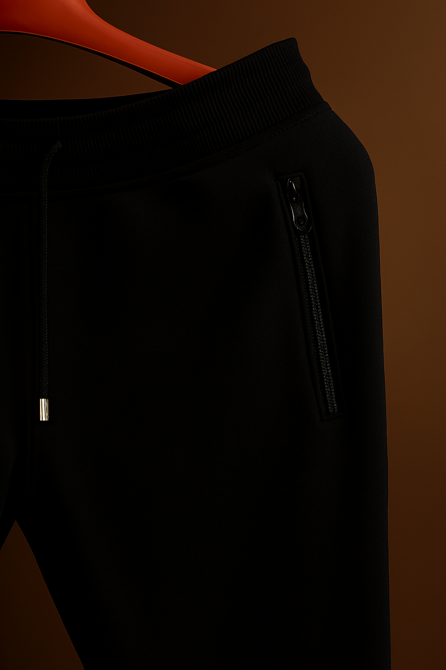 و Jogger ميلتون أسود يدمج بين الأناقة الخالصة وشدة الـ street style. الخصر مرن، الأرجل لُوفّ – ينزل من عند الكاحل بستايل مش مستحبله. اللون الأسود الداكن يكمل أي طقم، من تيشيرت أبيض بسيط إلى هودي لامع. تقدر تحس إنه فيك من أول ما تلبسه، بينا كتلة قوة وأناقة.