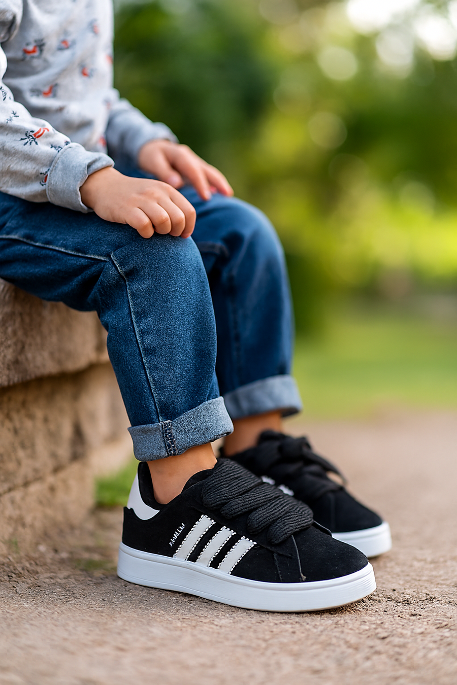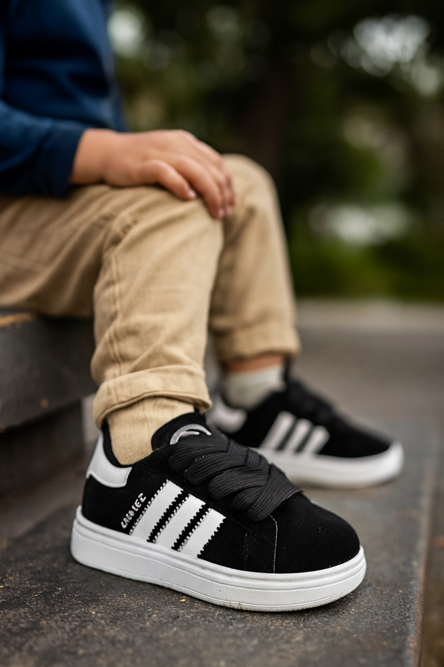 خلي طفلك يخطو بثقة وأناقة مع Campus Noir، كوتشي أطفال بتصميم كلاسيكي مستوحى من موديلات الكبار، لكن بخامات مريحة ومناسبة للحركة اليومية. يجمع بين اللون الأسود الأنيق وخطوط بيضاء بارزة، ليمنح طفلك ستايل عصري في المدرسة، النادي، أو الطلعات العائلية.